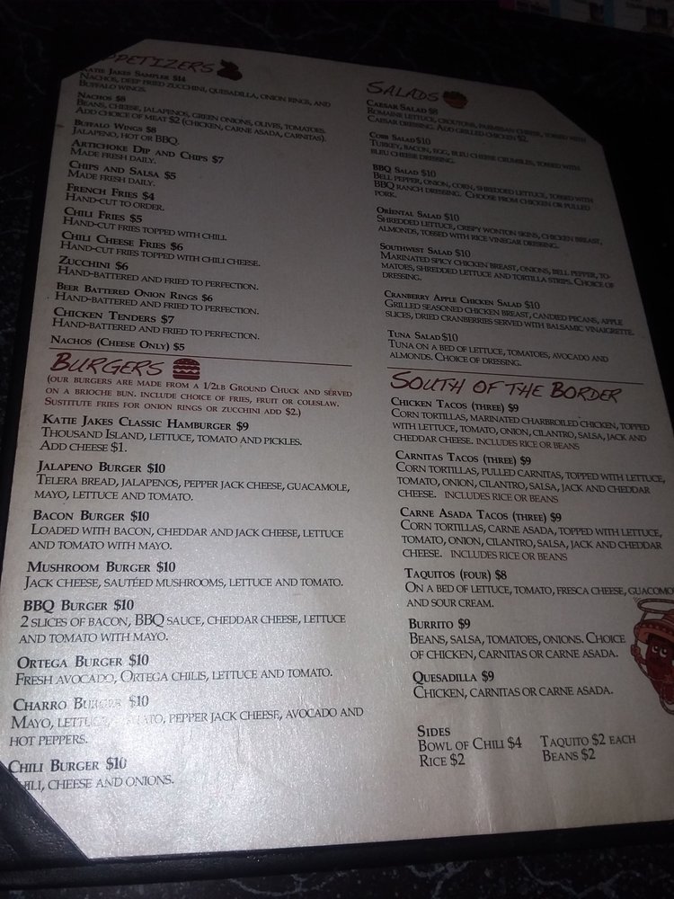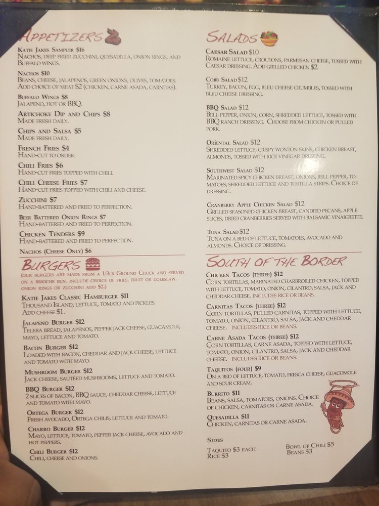 The outdoor seating allows you to enjoy your meal under the stars while you catch a live game on TV. Whether you're stopping by for a quick bite or celebrating a special occasion, KatieJakes is dedicated to making every experience memorable.